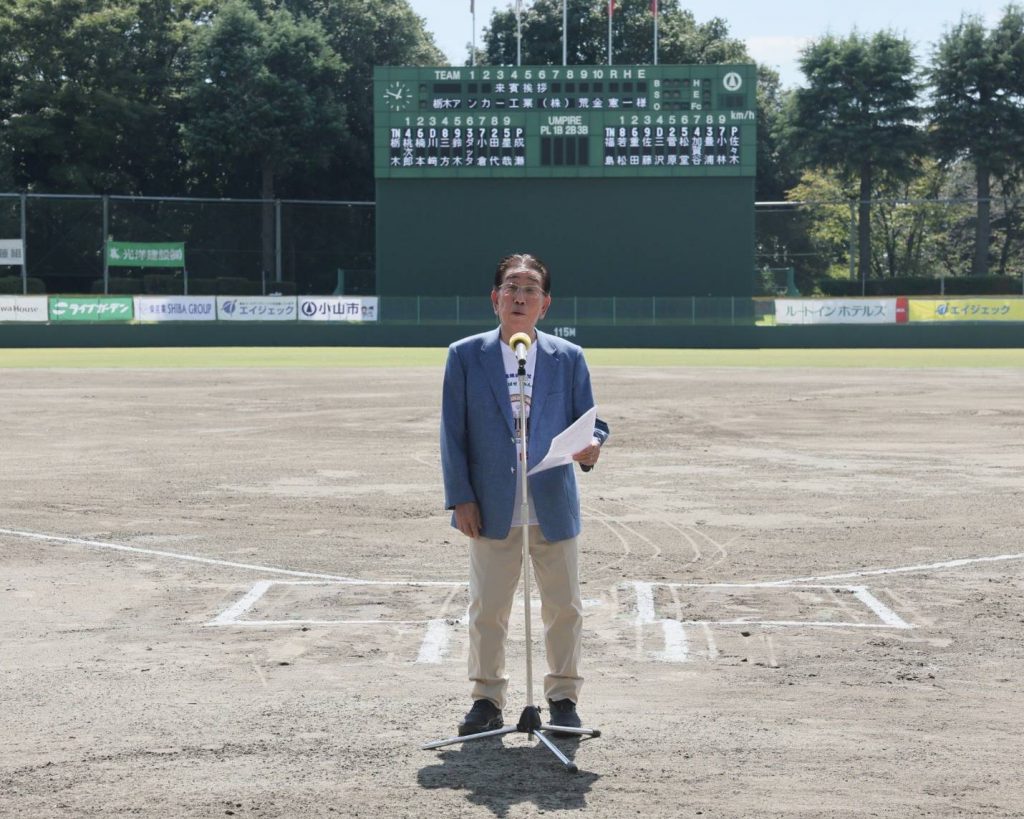 代表荒金の挨拶とケーブルテレビ株式会社社長 高田様による始球式でいよいよプレーボール(^o^)/