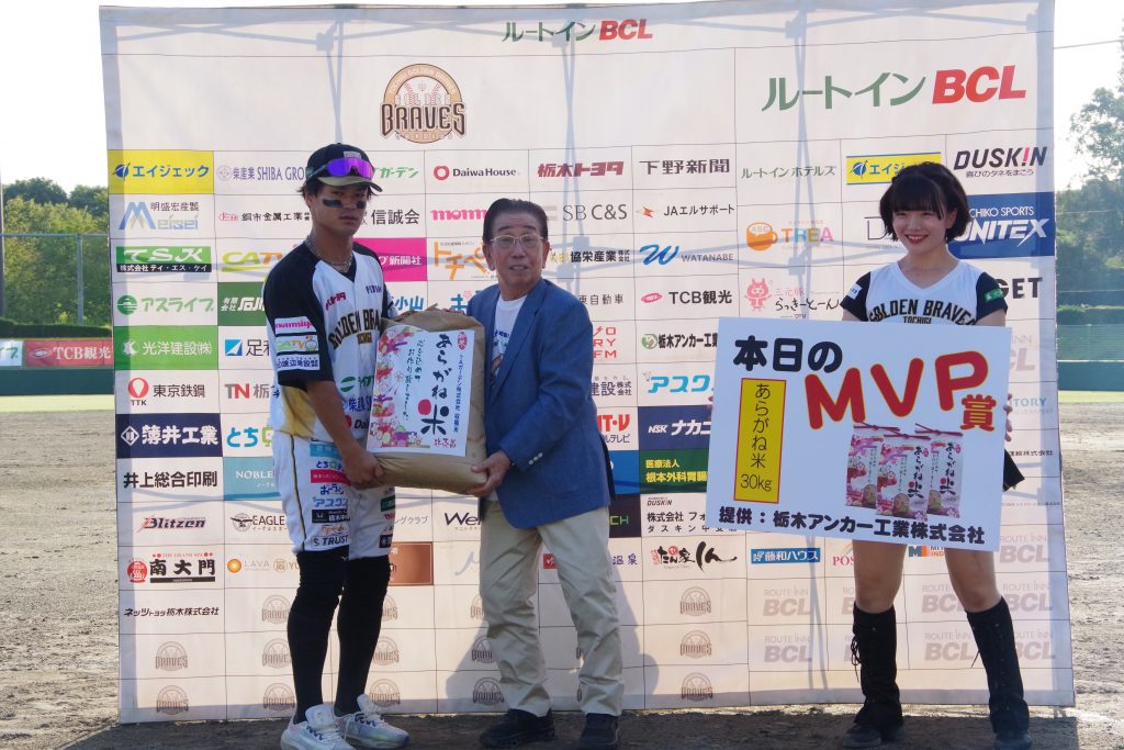 MVPの1小倉由靖選手に荒金米60kgとお酒が贈呈されました。