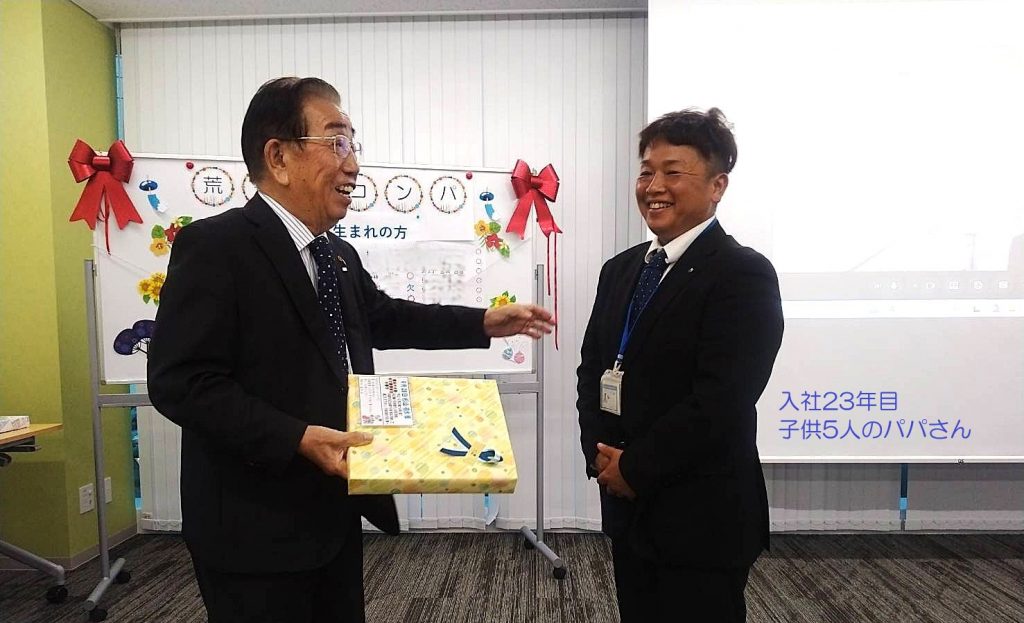 荒金社長よりメッセージの入ったプレゼントを手渡しで贈られます(*^^*)
